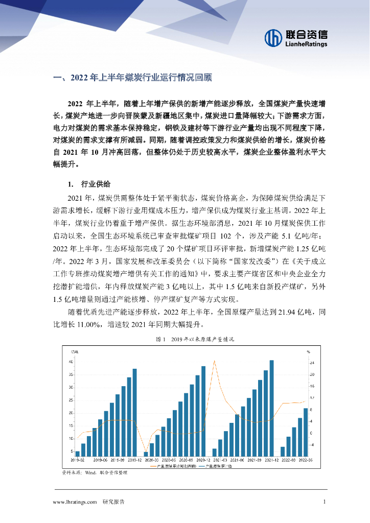 联合资信:2022年上半年煤炭行业信用风险总结与展望.pdf