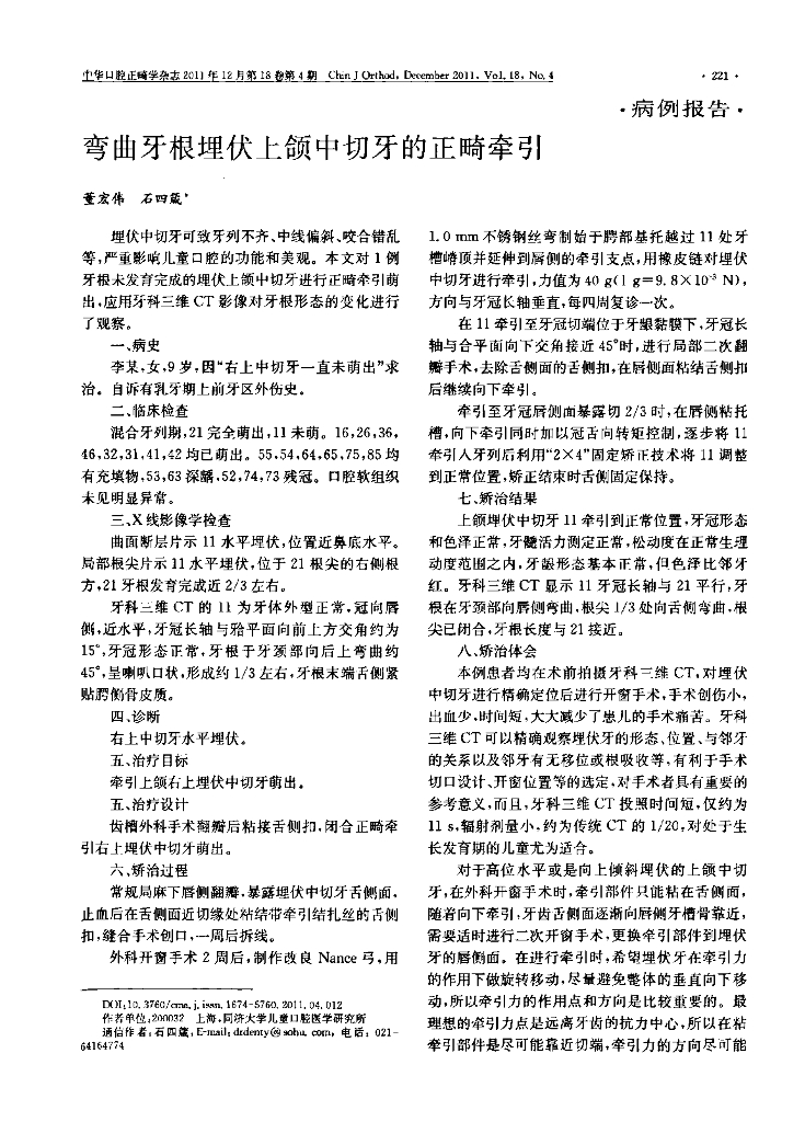 弯曲牙根埋伏上颌中切牙的正畸牵引.pdf