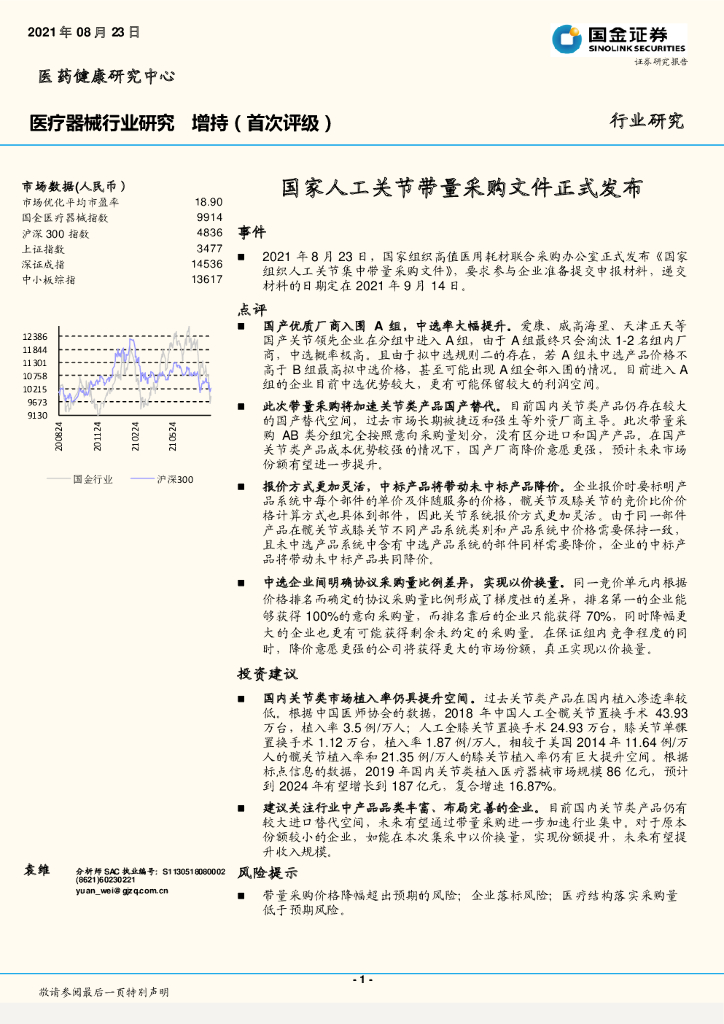 国金证券:医疗器械行业研究:国家人工关节带量采购文件正式发布.pdf