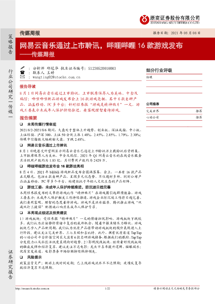 浙商证券:传媒周报:网易云音乐通过上市聆讯,哔哩哔哩16款游戏发布.pdf