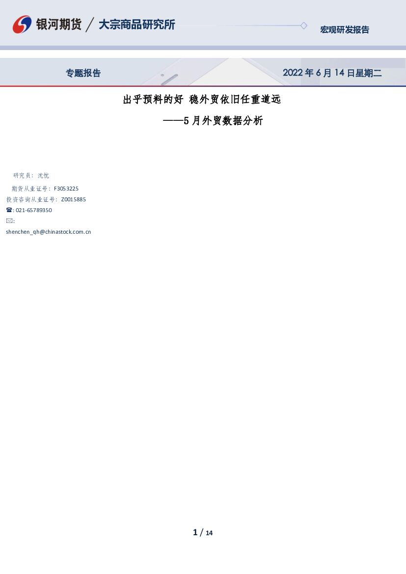 银河期货:5月外贸数据分析:出乎预料的好 稳外贸依旧任重道远.pdf