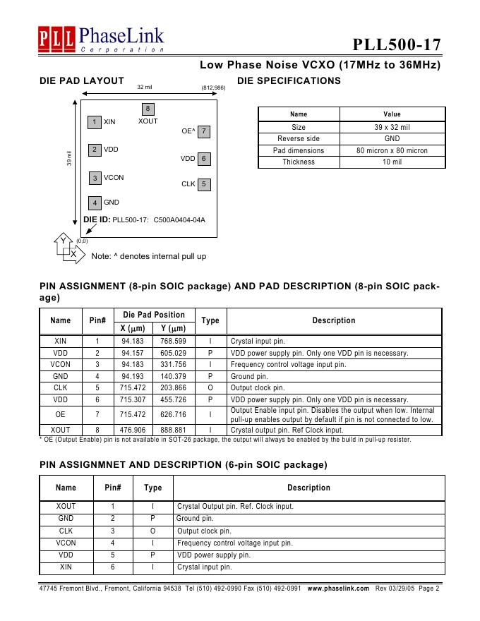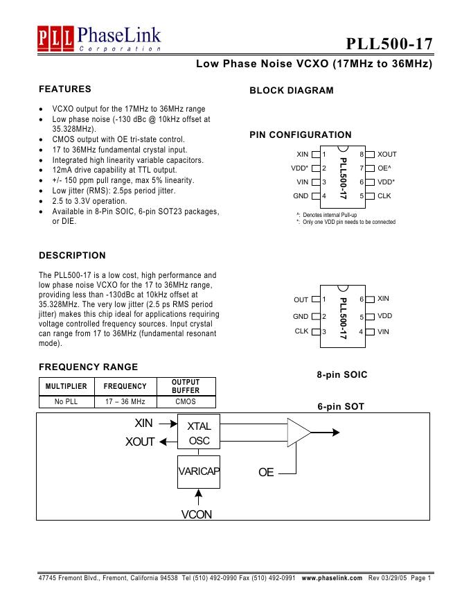 PhaseLink PLL500-17 数据手册.pdf
