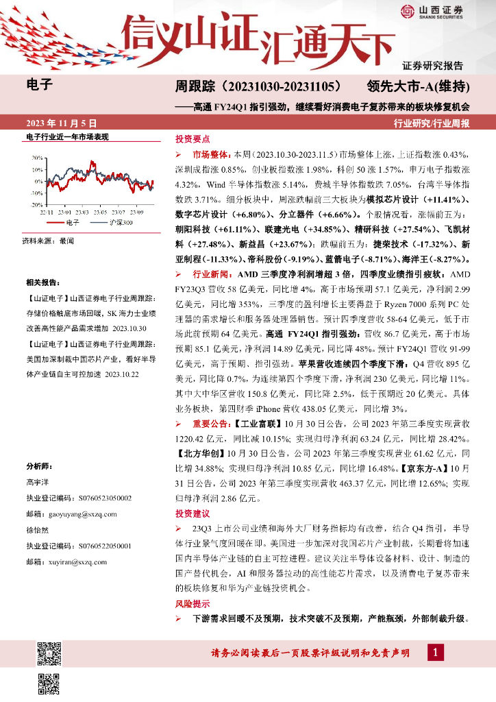 山西证券:电子周跟踪:高通FY24Q1指引强劲,继续看好消费电子复苏带来的板块修复机会.pdf
