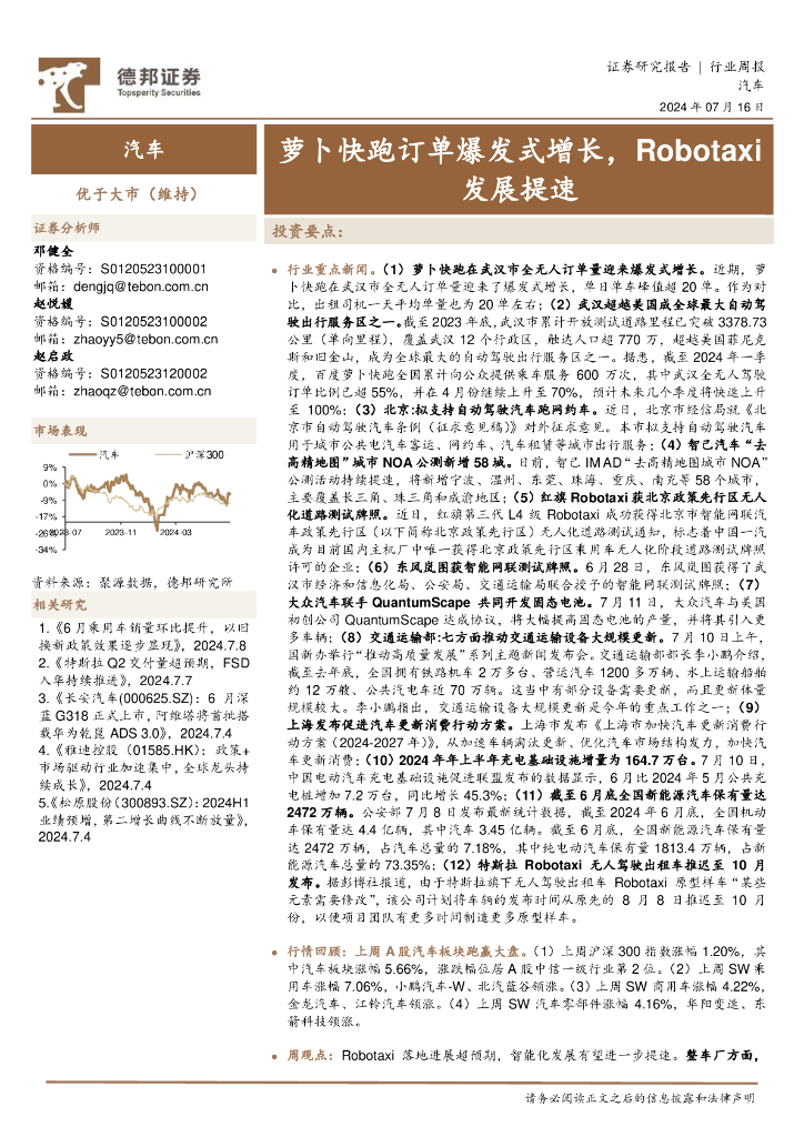 德邦证券:汽车行业周报:萝卜快跑订单爆发式增长,Robotaxi发展提速.pdf