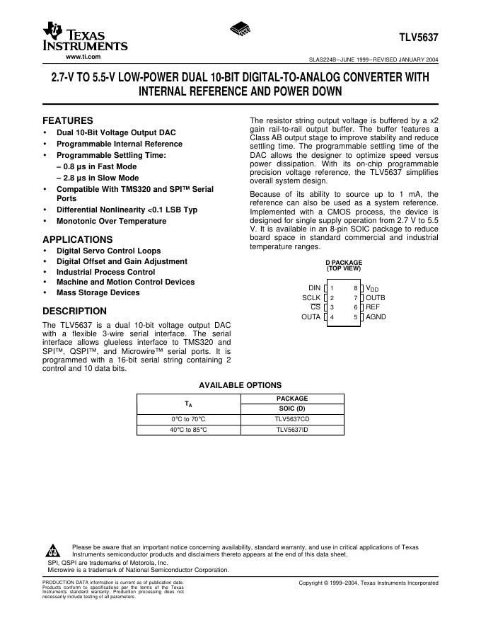 TEXAS INSTRUMENTS TLV5637 数据手册.pdf