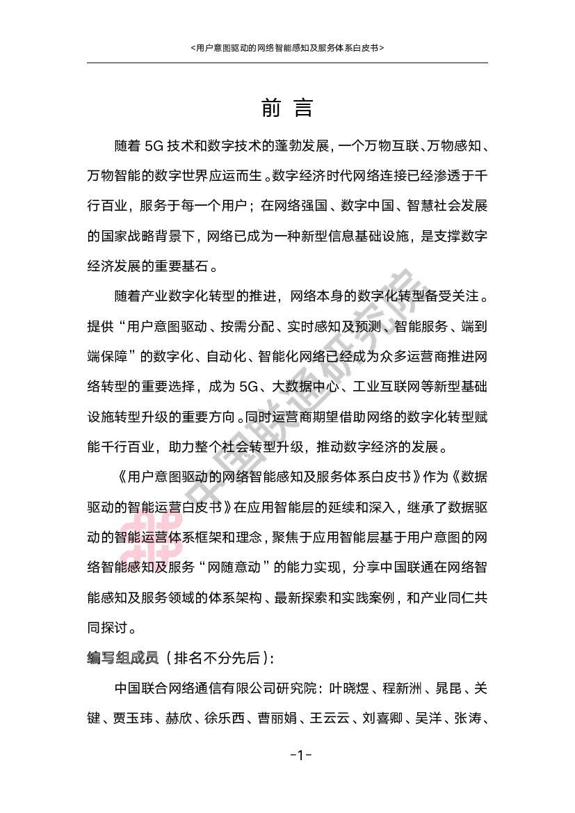 中国联通研究院:用户意图驱动的网络智能感知及服务体系白皮书.pdf