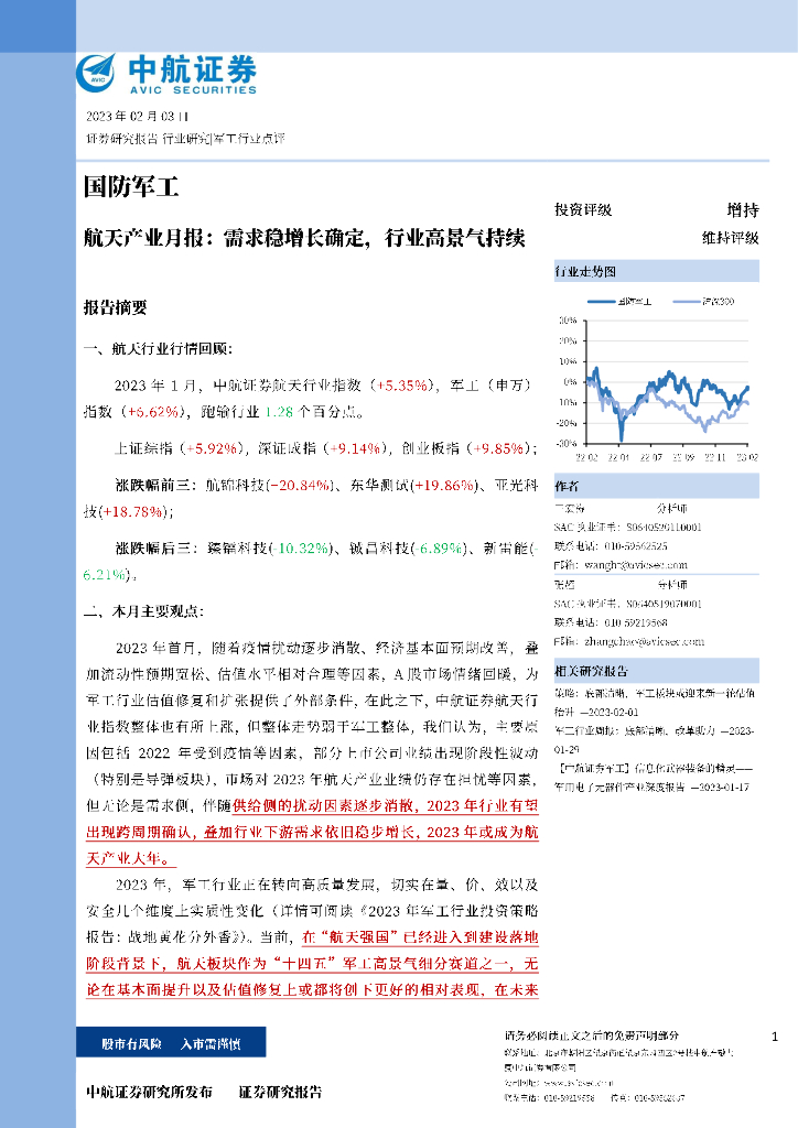 中航证券:航天产业月报:需求稳增长确定,行业高景气持续.pdf