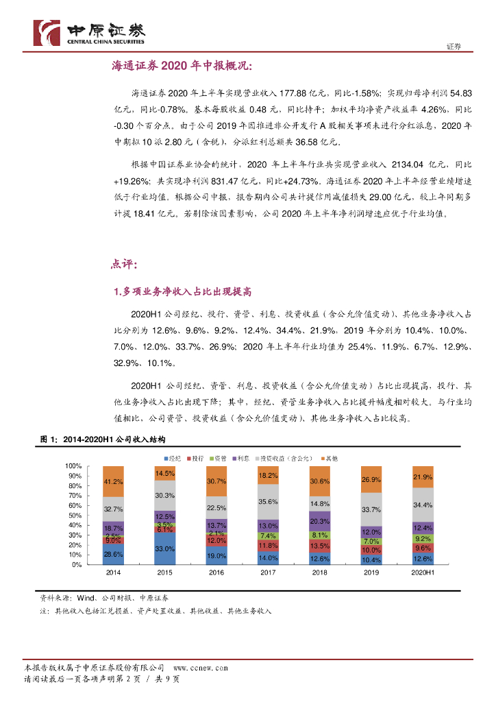 中原证券:海通证券(600837)-2020年中报点评:剔除信用减值影响业绩增速应优于行业均值.pdf