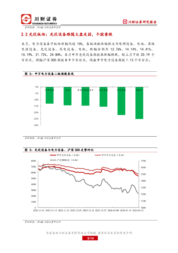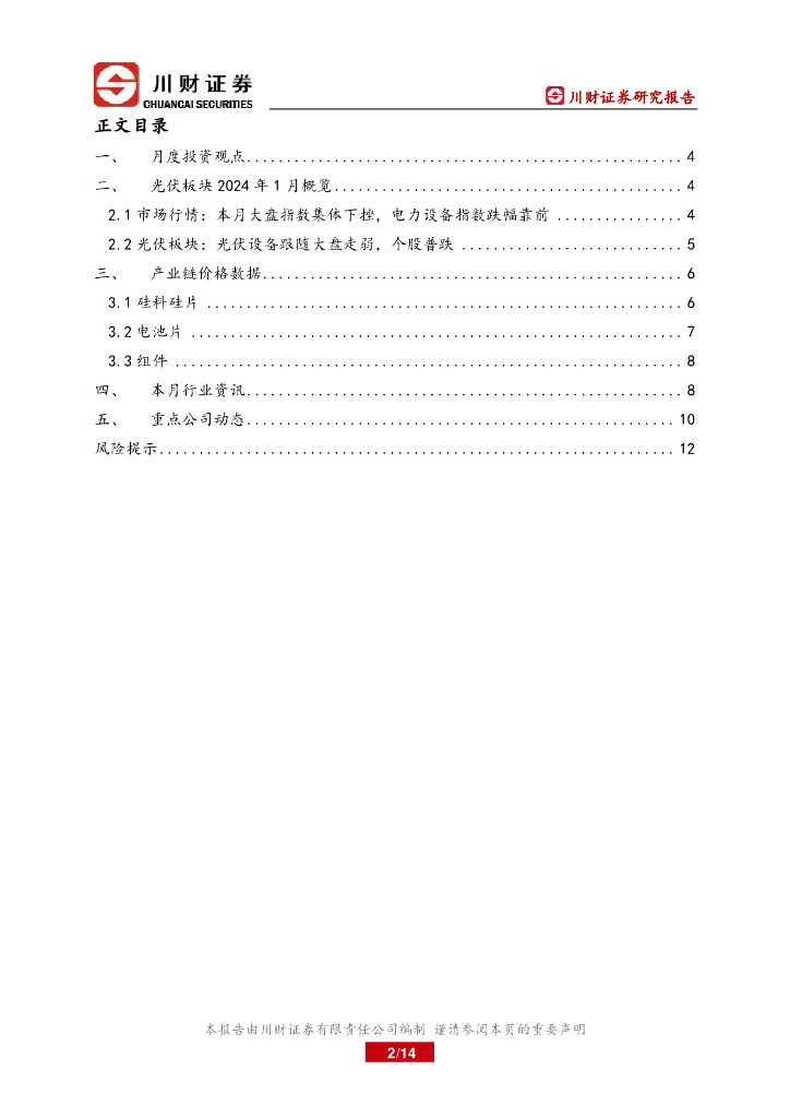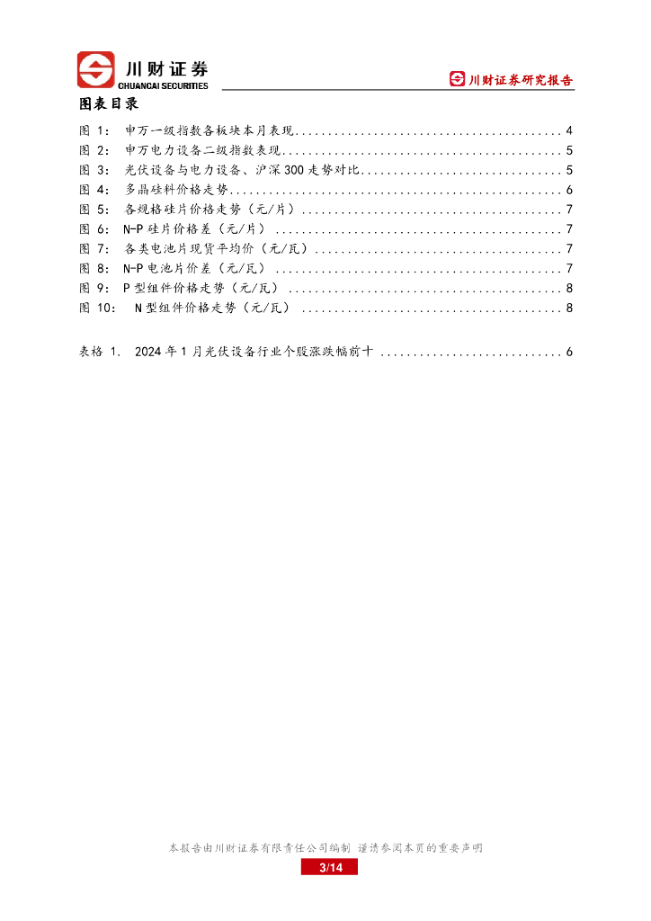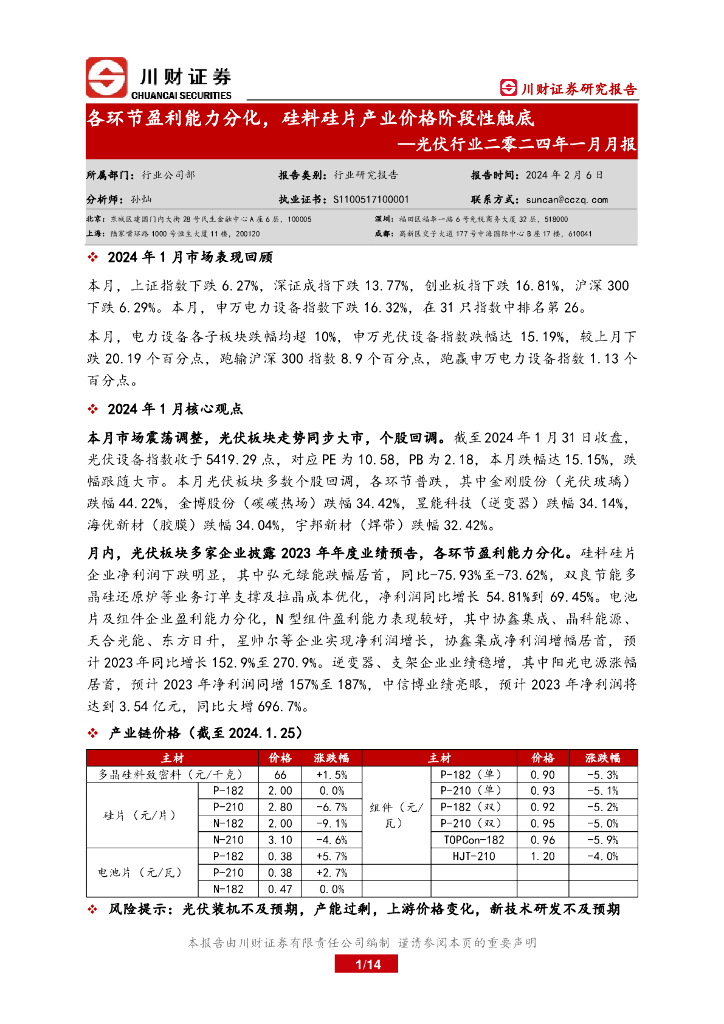 川财证券:光伏行业二零二四年一月月报:各环节盈利能力分化,硅料硅片产业价格阶段性触底.pdf