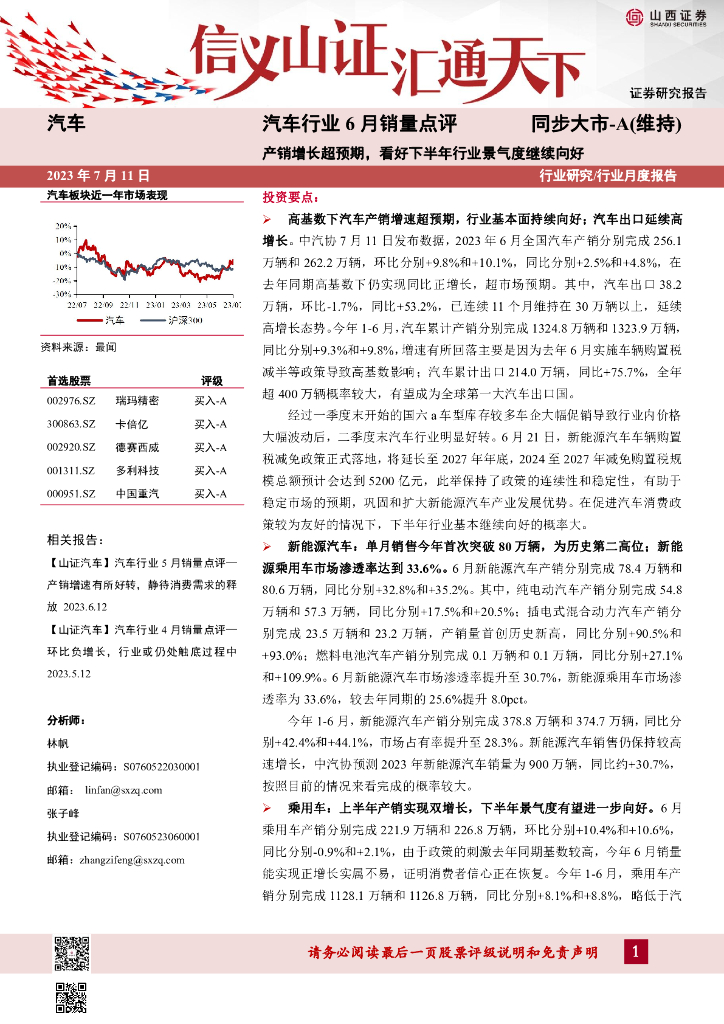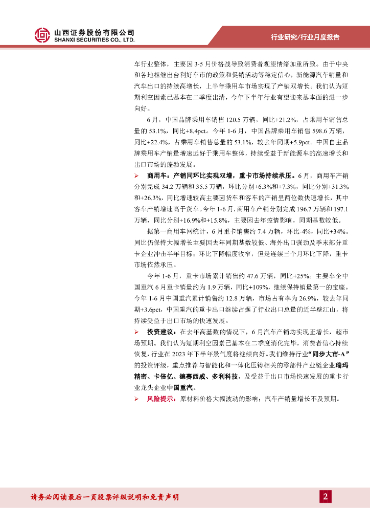 山西证券:汽车行业6月销量点评:产销增长超预期,看好下半年行业景气度继续向好.pdf