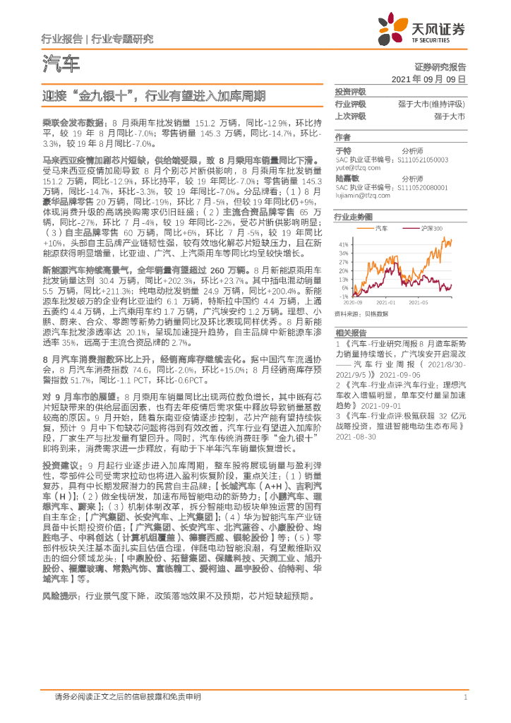 天风证券:汽车行业专题研究:迎接“金九银十”,行业有望进入加库周期.pdf
