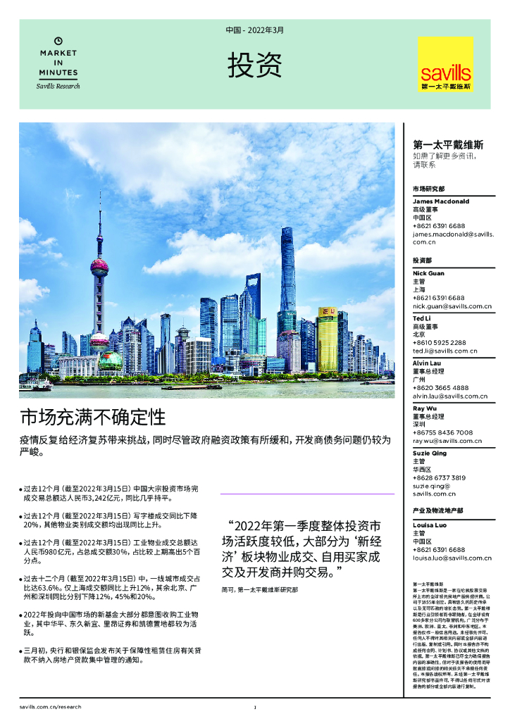 第一太平戴维斯:中国投资市场2022年第一季度报告.pdf