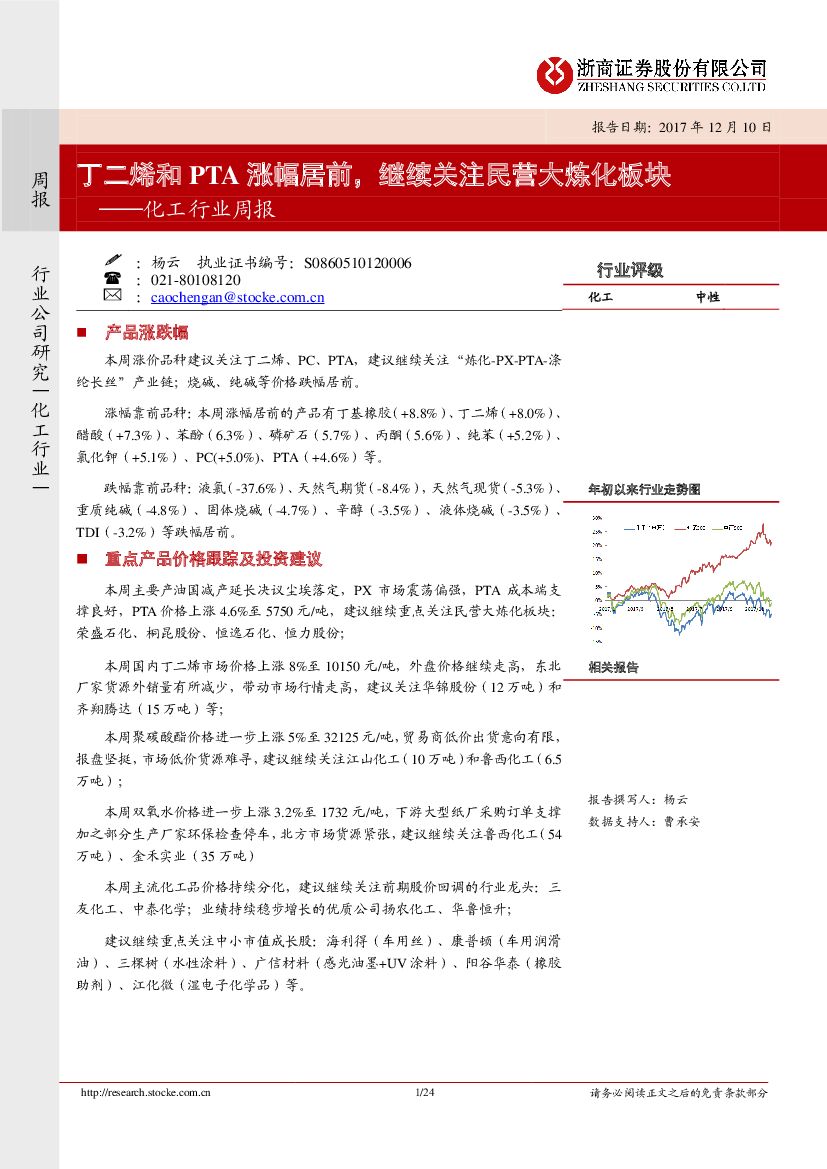 浙商证券:化工行业周报:丁二烯和PTA涨幅居前,继续关注民营大炼化板块.pdf