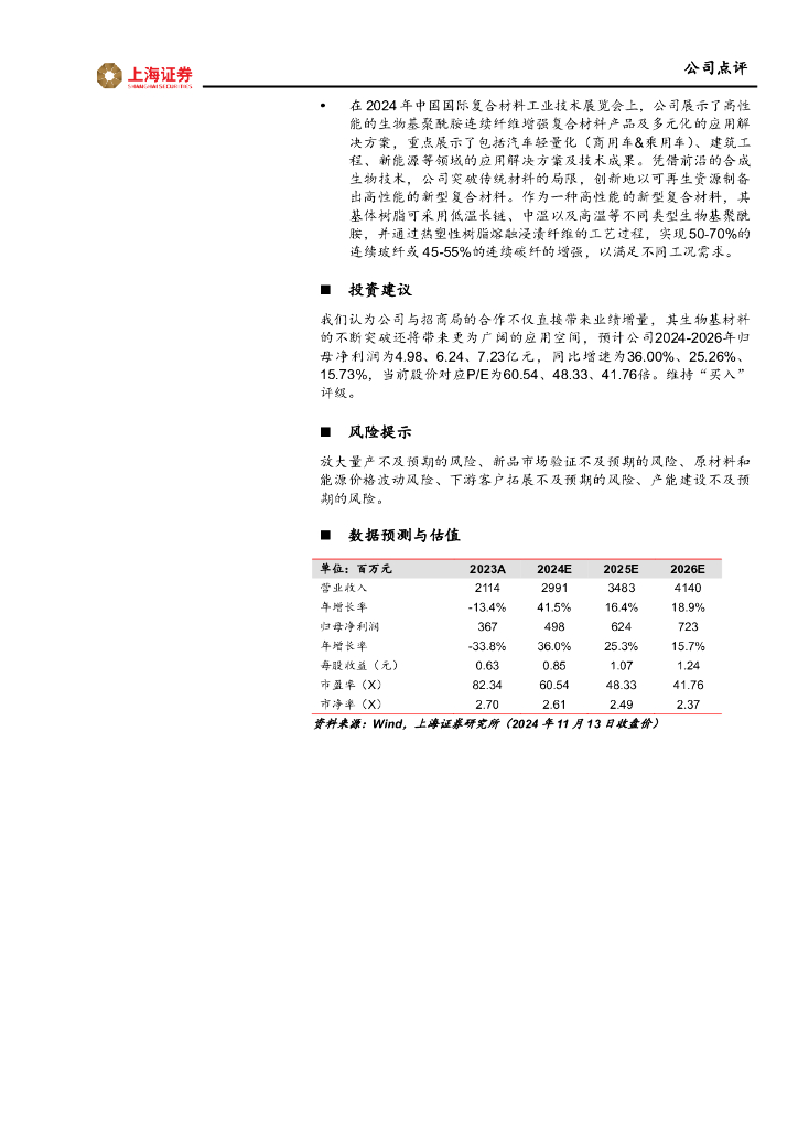 上海证券:凯赛生物2024三季报点评:三季报业绩改善,生物基新材料打开应用空间.pdf