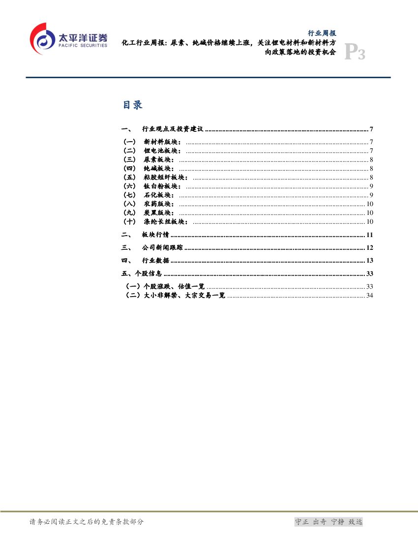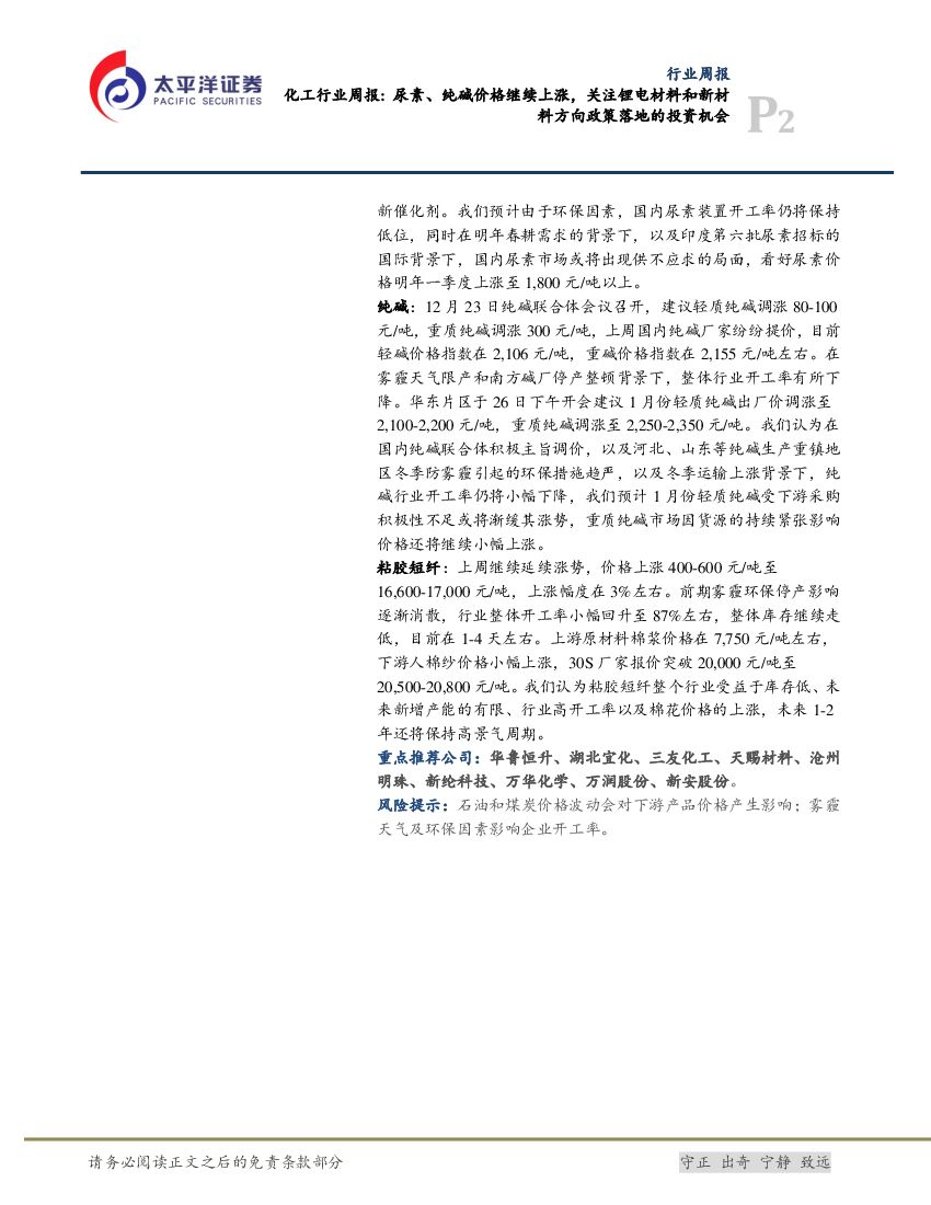 太平洋证券:化工行业周报:尿素、纯碱价格继续上涨,关注锂电材料和新材料方向政策落地的投资机会.pdf