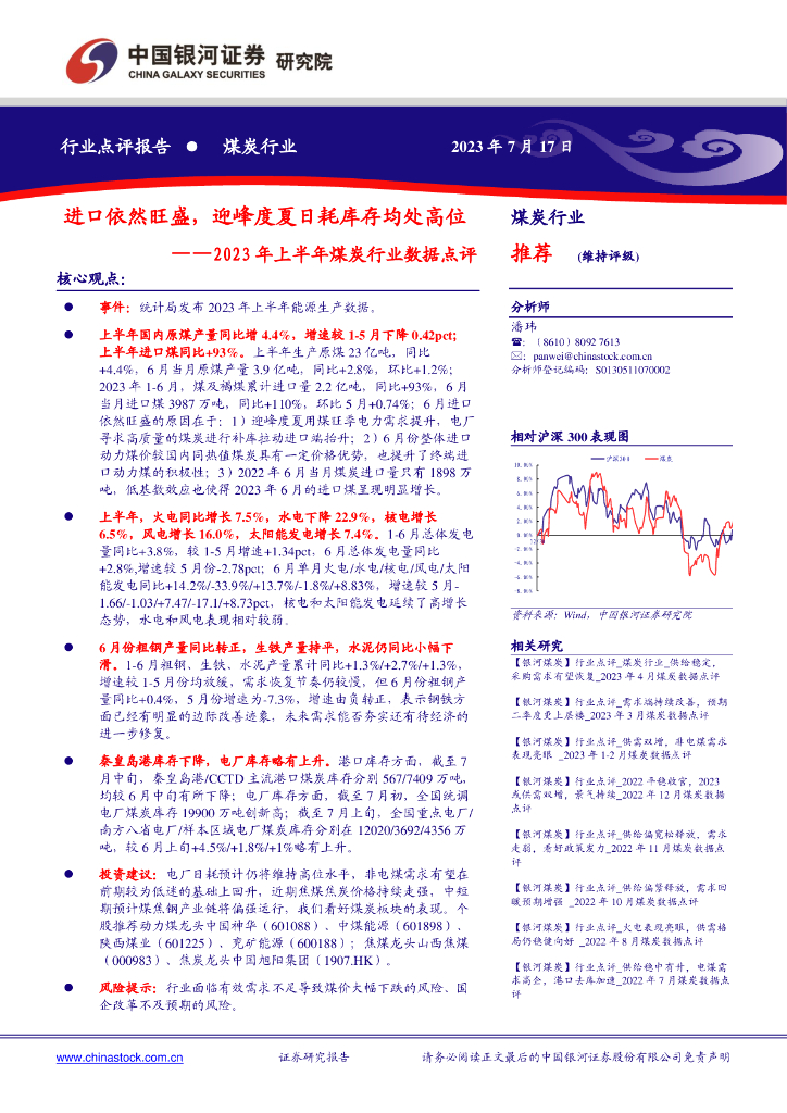 中国银河:2023年上半年煤炭行业数据点评:进口依然旺盛,迎峰度夏日耗库存均处高位.pdf