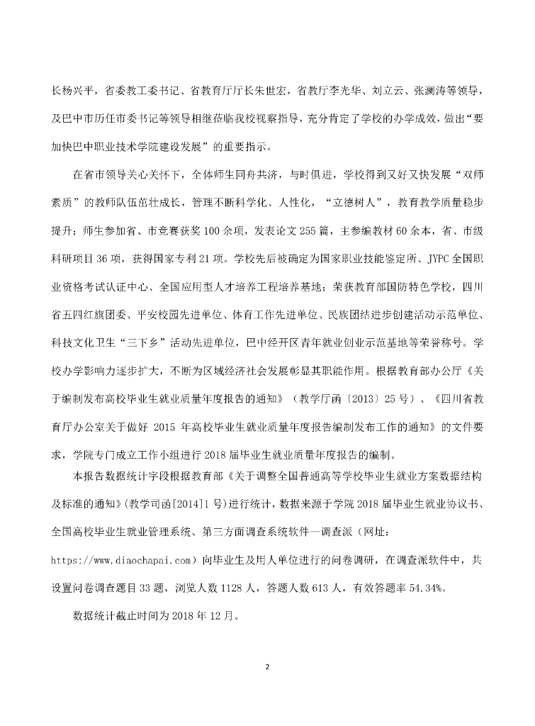 巴中职业技术学院2018届毕业生就业质量报告.pdf