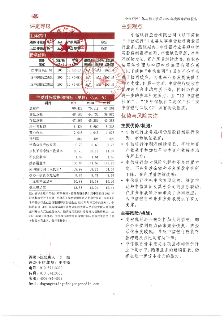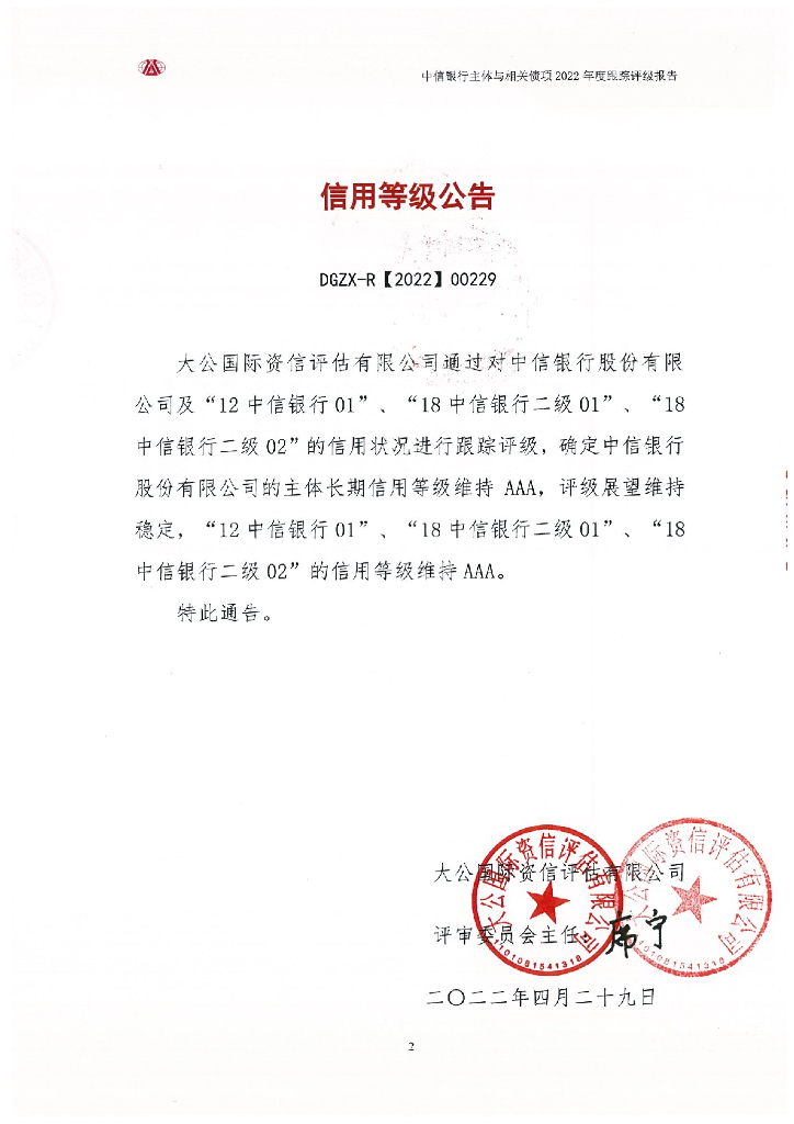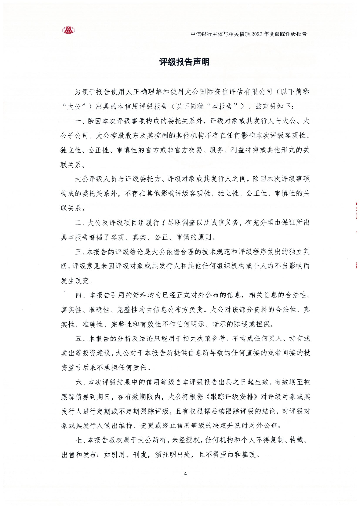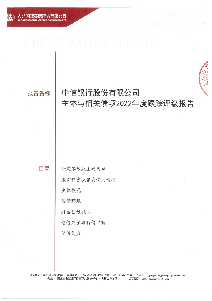 大公:中信银行股份有限公司主体与相关债项2022年度跟踪评级报告.pdf