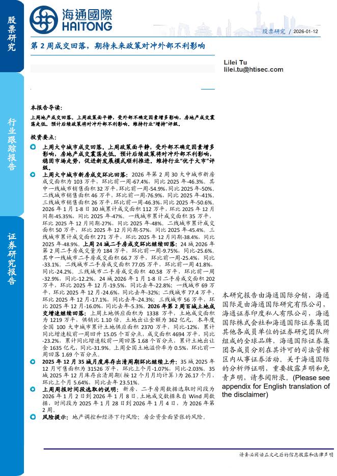 海通国际:房地产行业:第2周成交回落,期待未来政策对冲外部不利影响.pdf