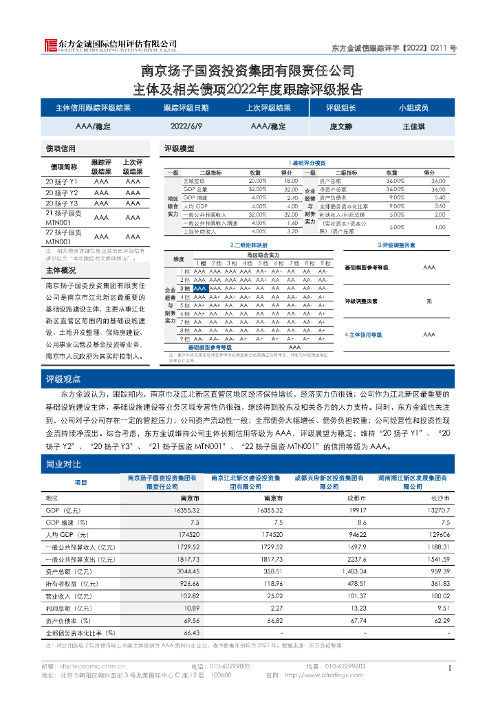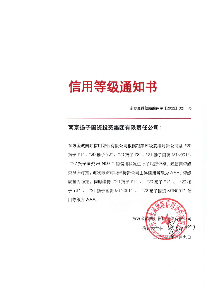 东方金诚:南京扬子国资投资集团有限责任公司主体及相关债项2022年度跟踪评级报告.pdf