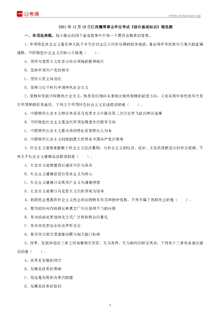 2021年12月18日江西鹰潭事业单位考试《综合基础知识》精选题.pdf