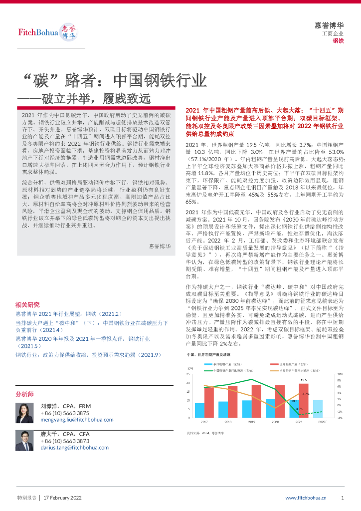 惠誉博华:“碳”路者:中国钢铁行业--破立并举,履践致远.pdf