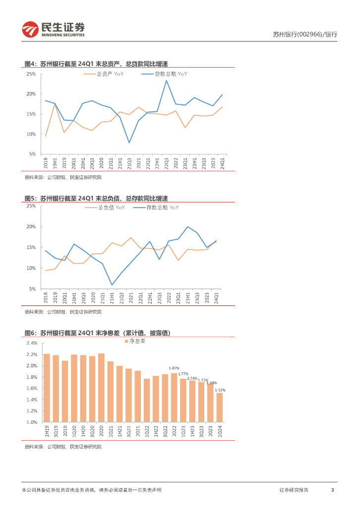 民生证券:苏州银行(002966)-2023年年报&2024年一季报点评:信贷投放积极,营收增速提升.pdf