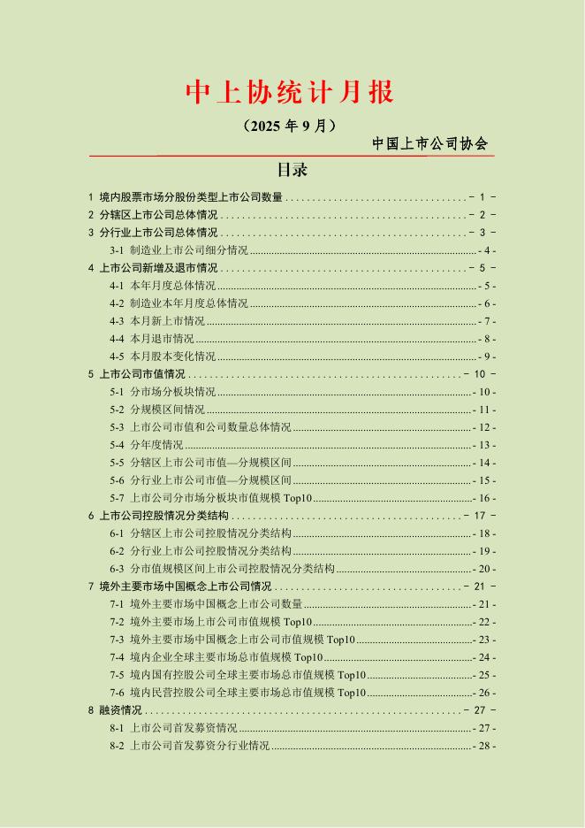中国上市公司协会:中上协统计月报(2025年9月).pdf