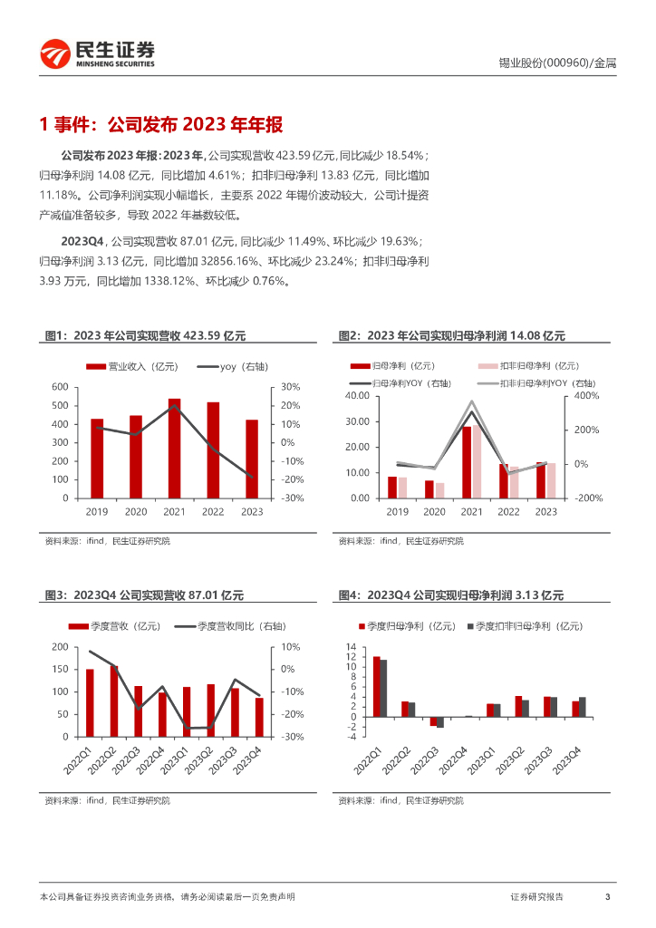 民生证券:锡业股份(000960)-2023年年报点评:业绩符合预期,矿端紧张驱动价格上行.pdf