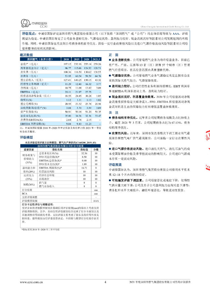 中诚信:2021年度深圳市燃气集团股份有限公司信用评级报告.pdf