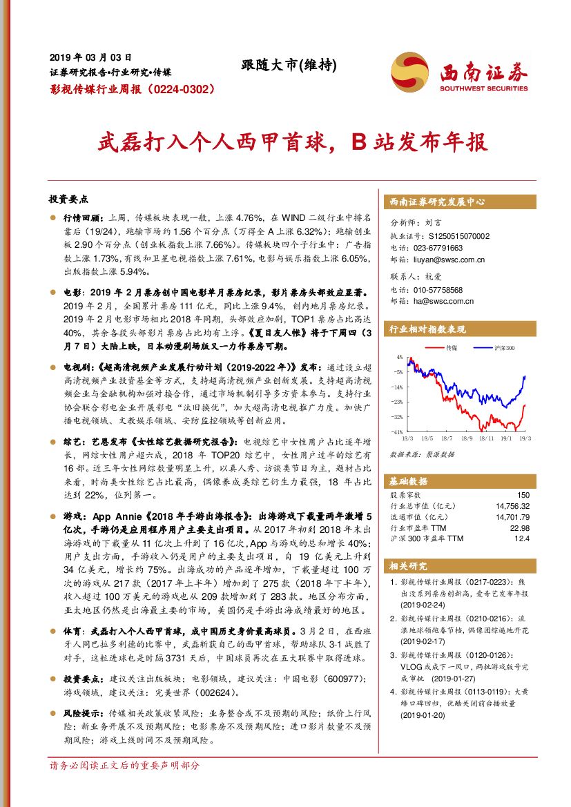 西南证券:影视传媒行业周报:武磊打入个人西甲首球,B站发布年报.pdf