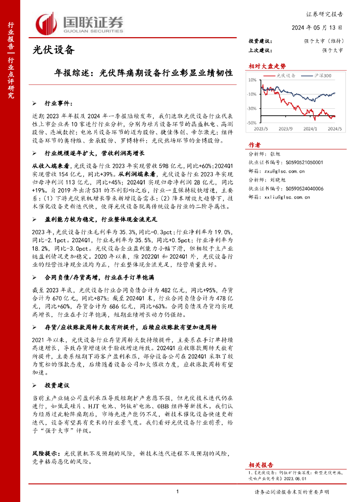 国联证券:光伏设备年报综述:光伏阵痛期设备行业彰显业绩韧性.pdf