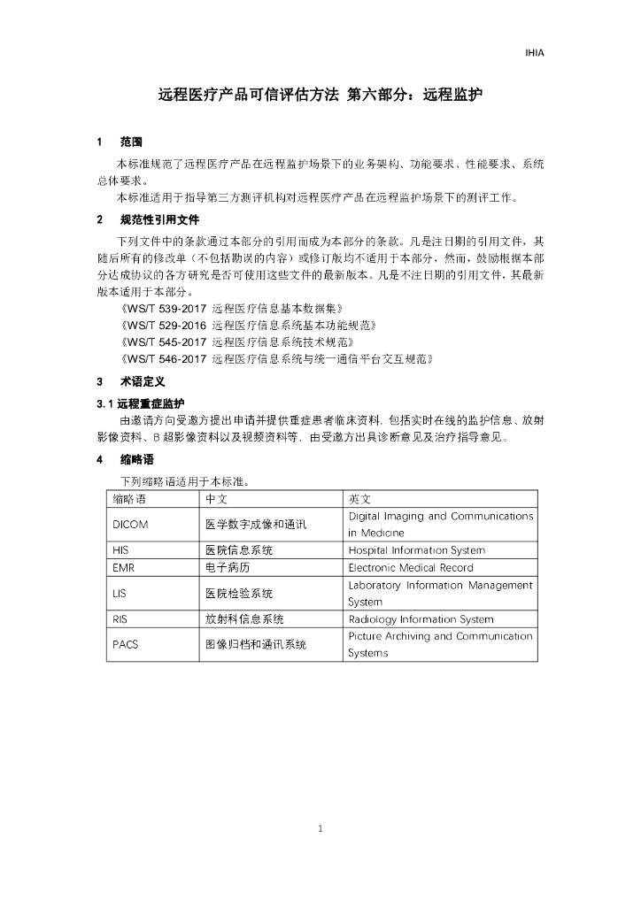 互联网医疗健康产业联盟:远程医疗产品可信评估方法:第六部分 远程监护.pdf