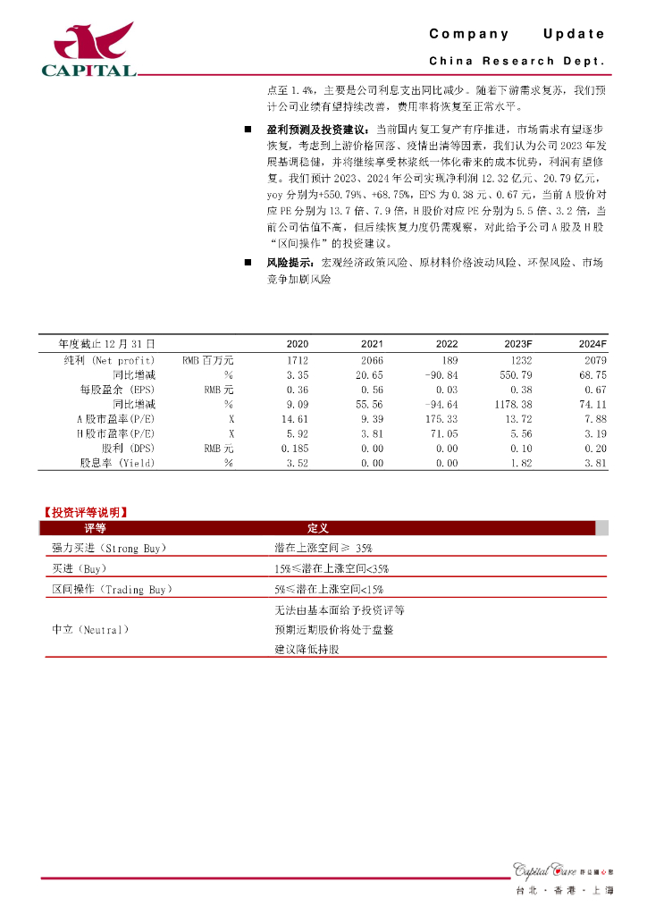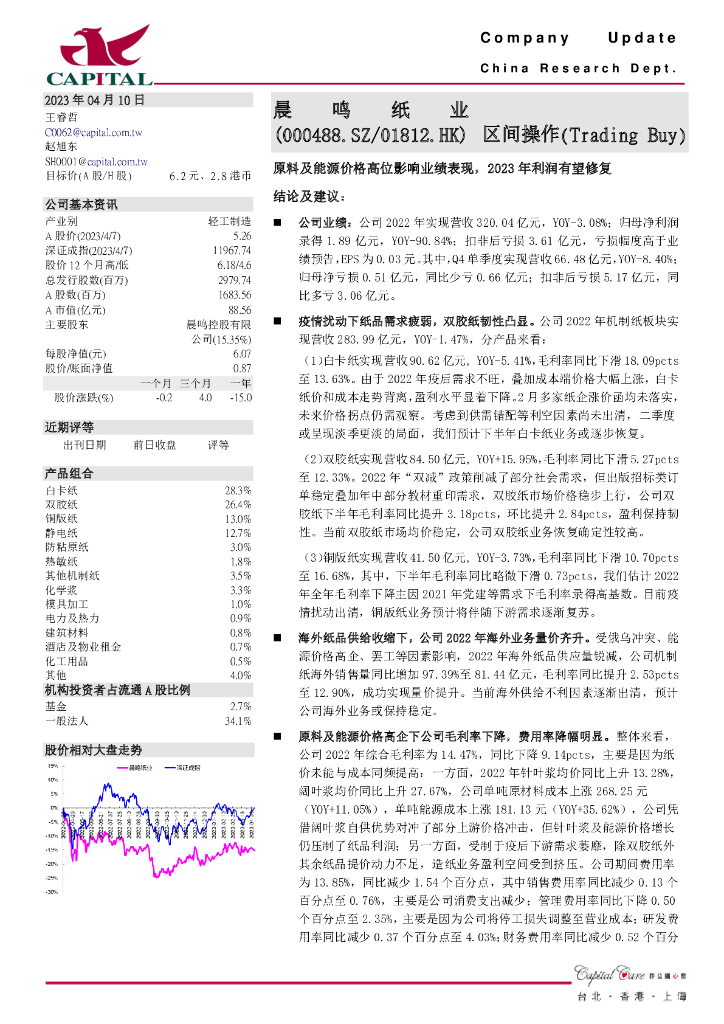 群益证券:晨鸣纸业(000488)-原料及能源价格高位影响业绩表现,2023年利润有望修复.pdf