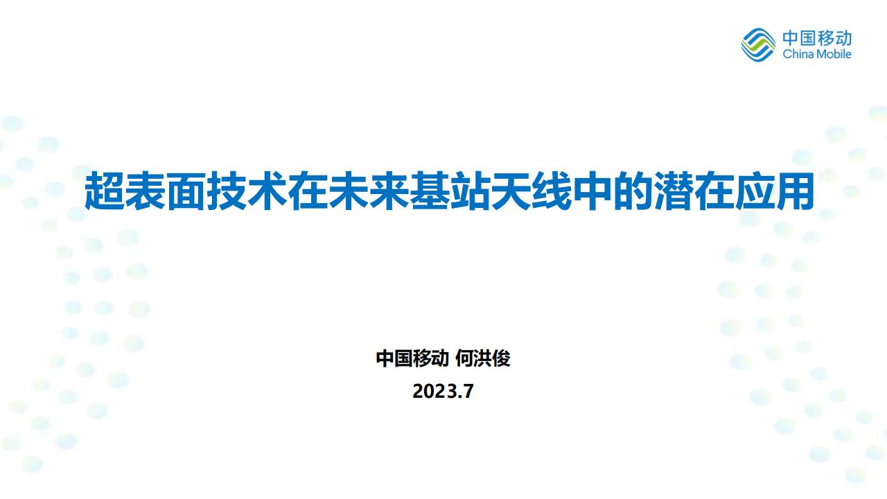 中国移动(何洪俊):超表面技术在未来基站天线中的潜在应用.pdf
