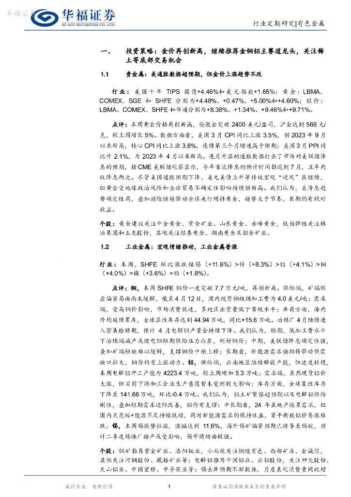 华福证券:有色金属行业周报:金价再创新高,继续推荐金铜铝主赛道龙头,关注稀土等底部交易机会.pdf