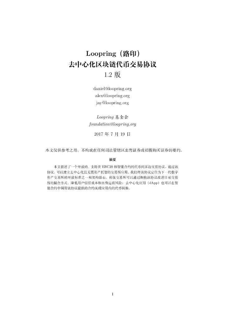 LooPring路印白皮书:去中心化区块链代币交易协议.pdf