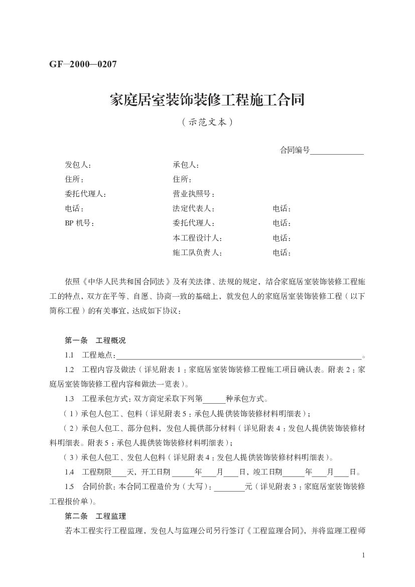 GF-2000-0207 家庭居室装饰装修工程施工合同(示范文本).pdf