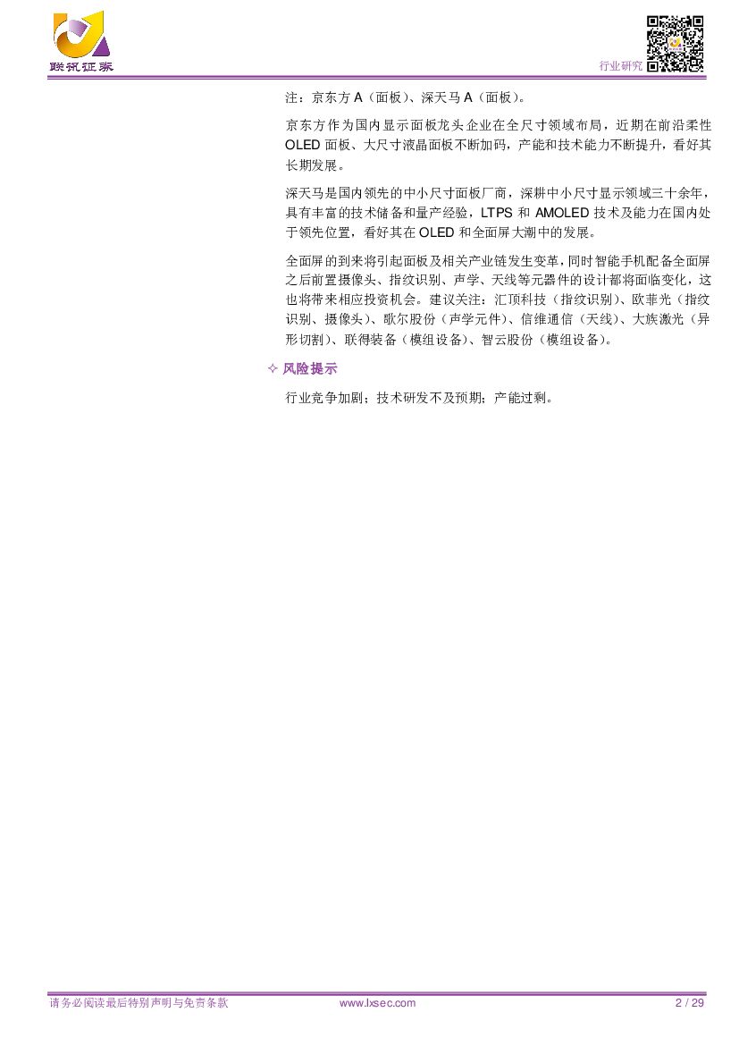 联讯证券:【联讯电子行业研报】面板行业半年回顾与展望:电视面板价格下滑,全面屏蓄势待发.pdf