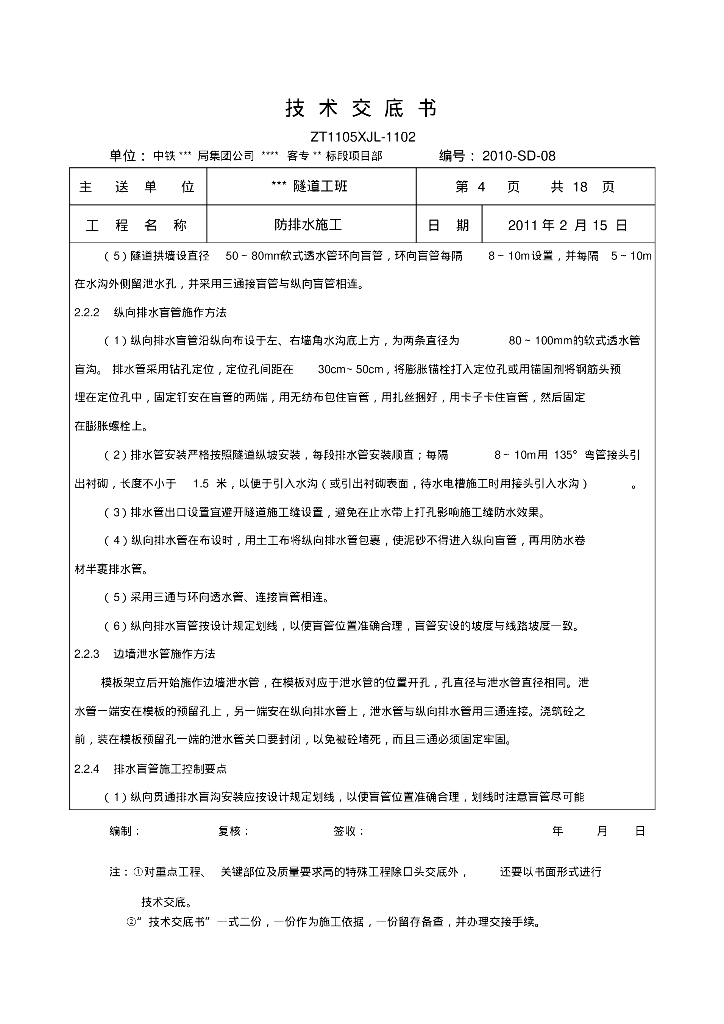 高铁客运专线隧道防排水技术交底书.pdf