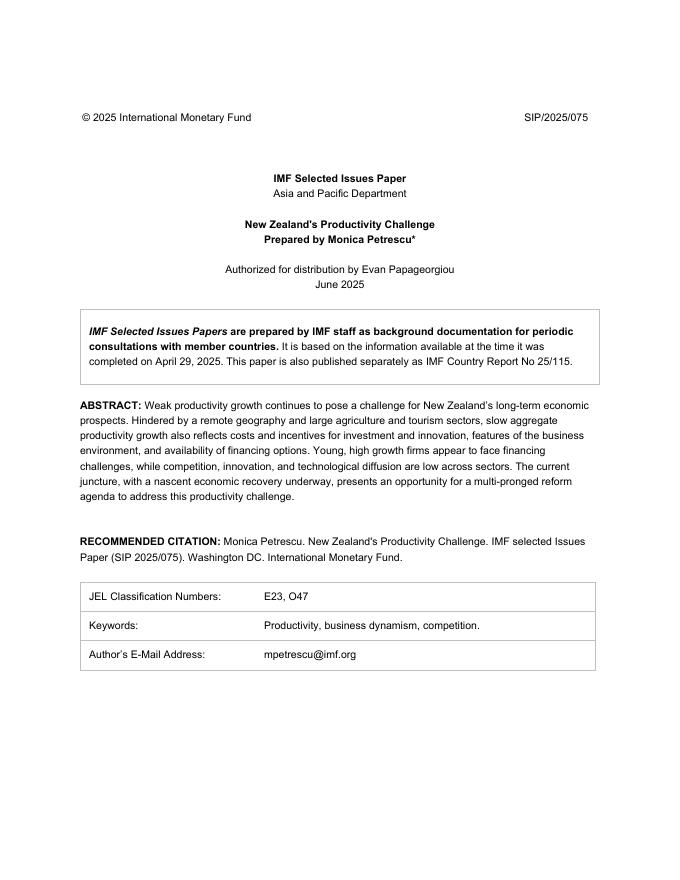 国际货币基金组织:新西兰的生产力挑战:新西兰(英文版).pdf