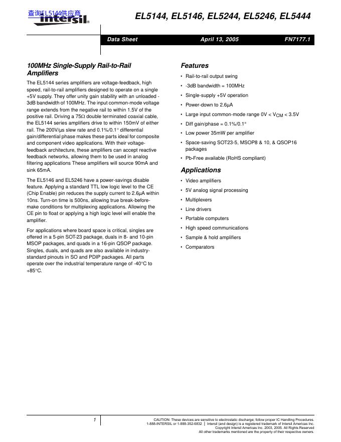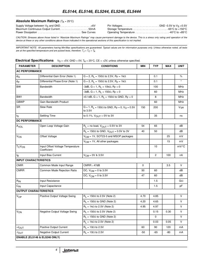 intersil EL5144, EL5146, EL5244, EL5246, EL5444 数据手册.pdf
