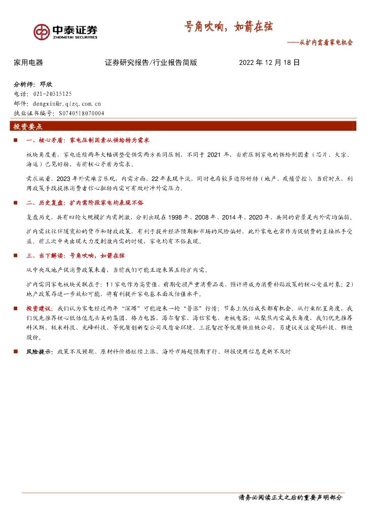 中泰证券:家用电器行业报告简版:从扩内需看家电机会-号角吹响,如箭在弦.pdf