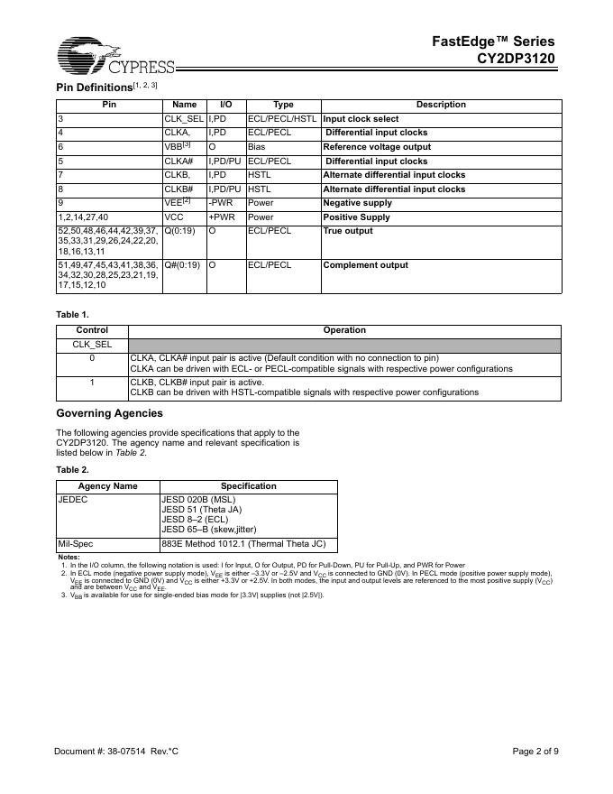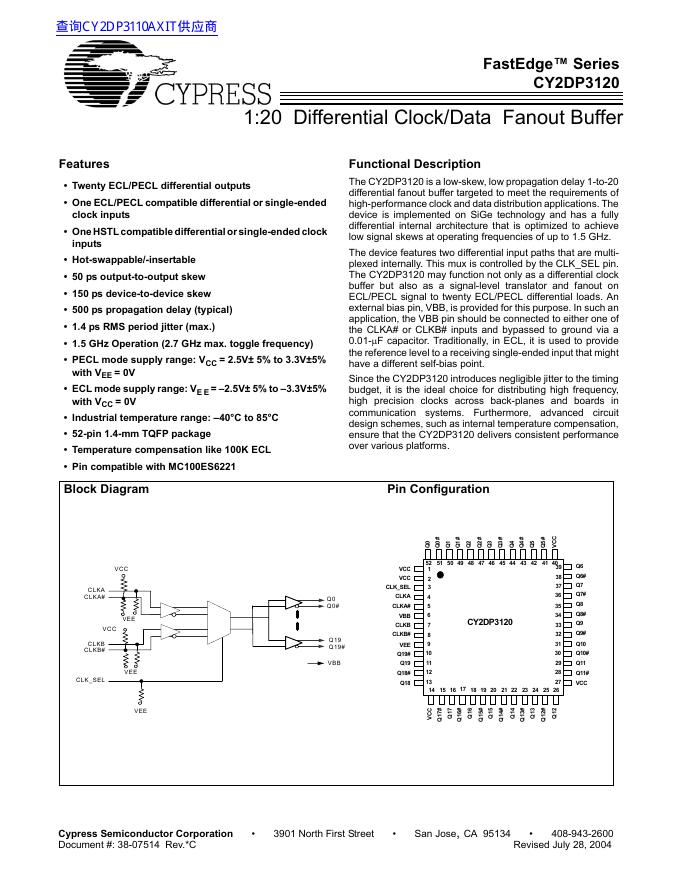 CYPRESS FastEdge Series CY2DP3120 数据手册.pdf