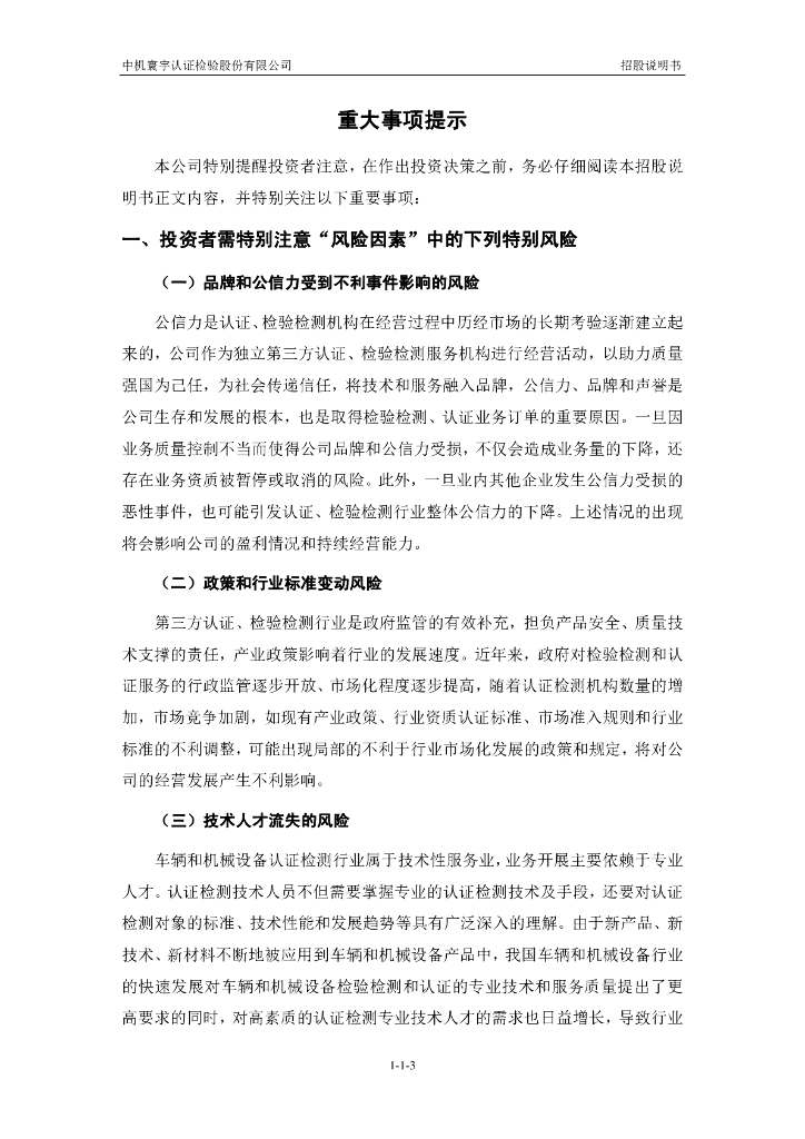 中机认检创业板IPO上市招股说明书:公司竞争力堪忧!.pdf