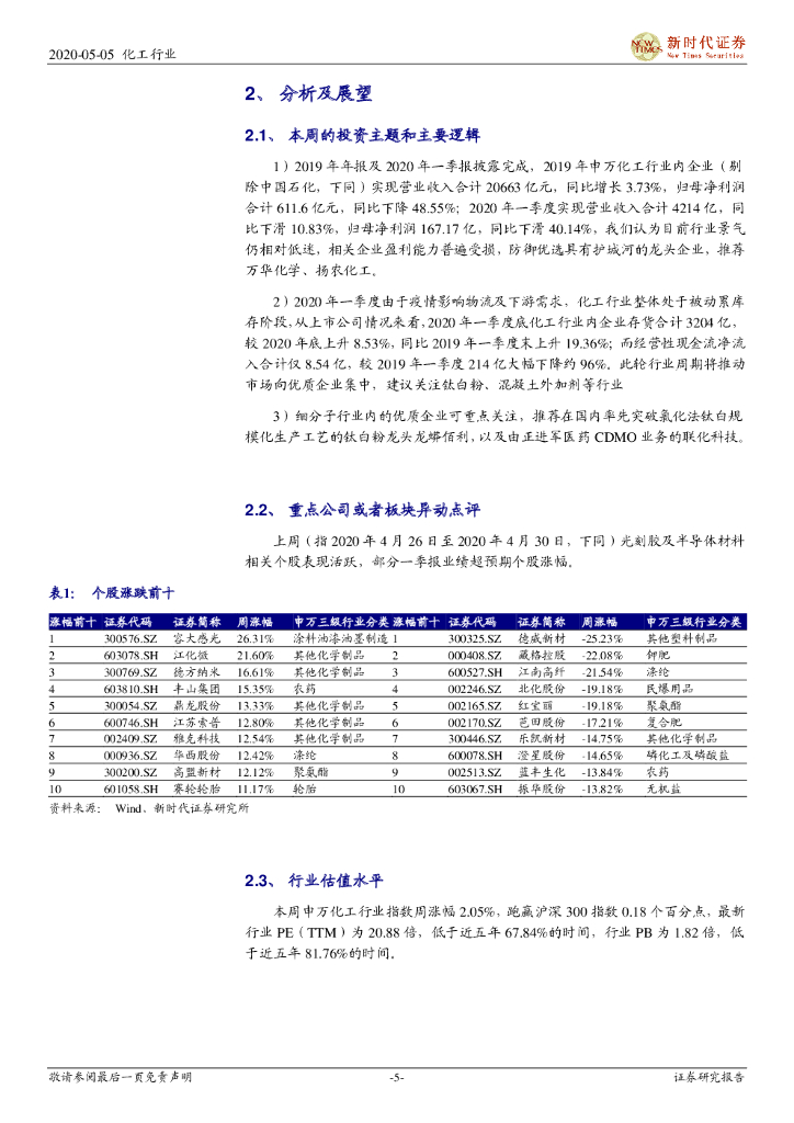新时代证券:化工行业投资周报:周期筑底过程中,布局优质龙头企业.pdf
