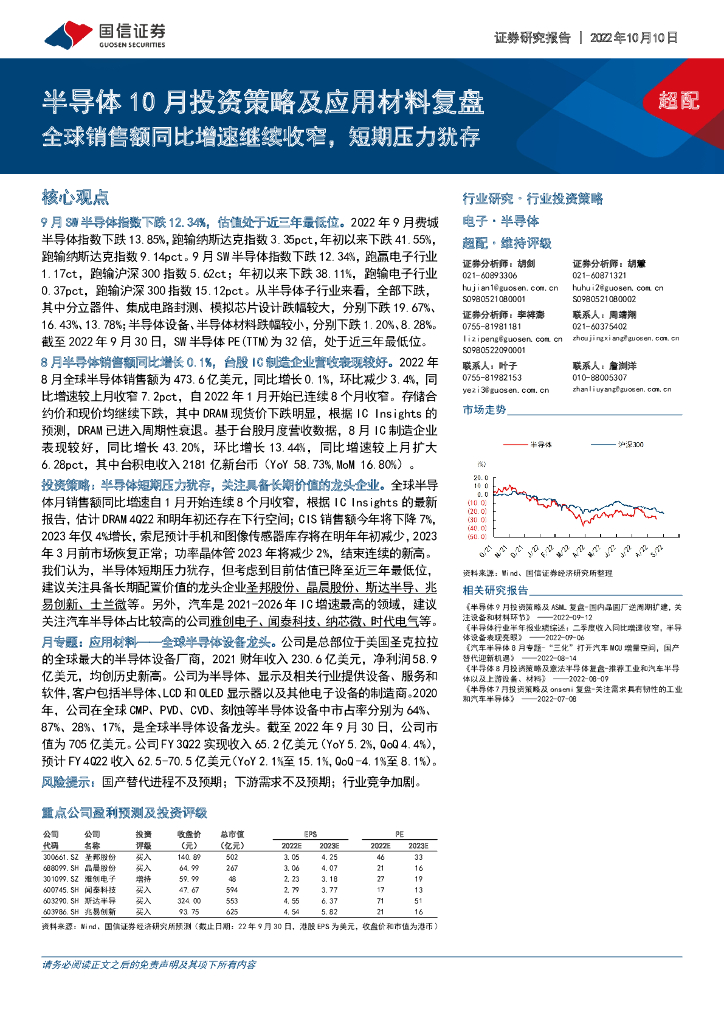 国信证券:半导体10月投资策略及应用材料复盘:全球销售额同比增速继续收窄,短期压力犹存.pdf