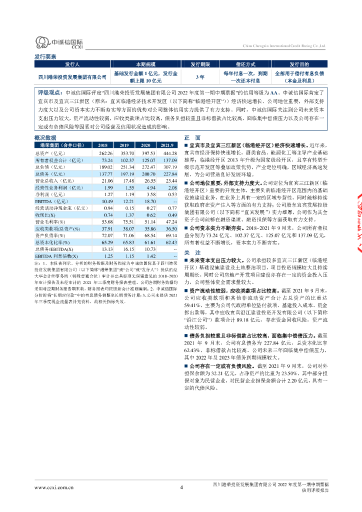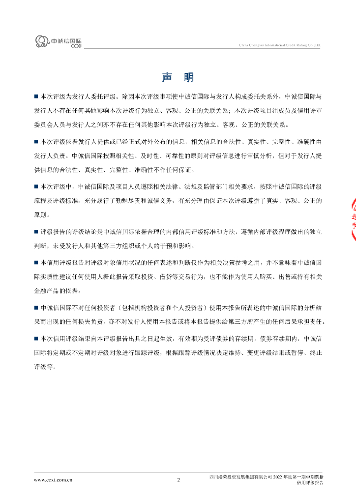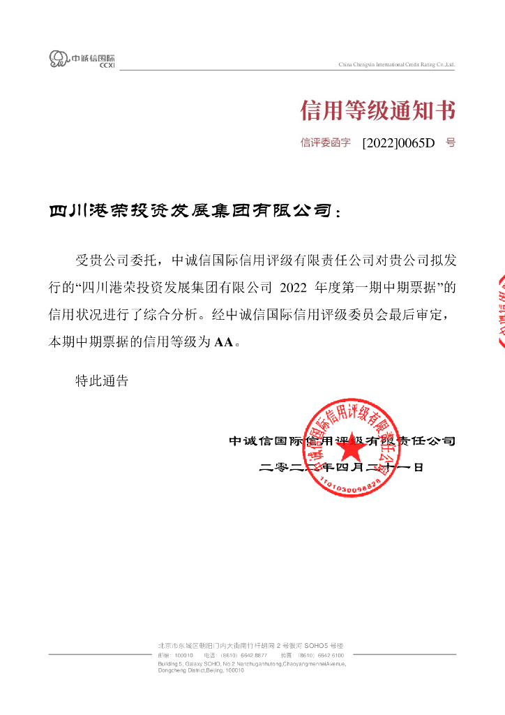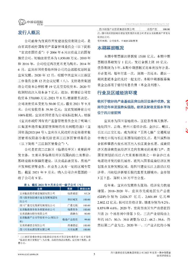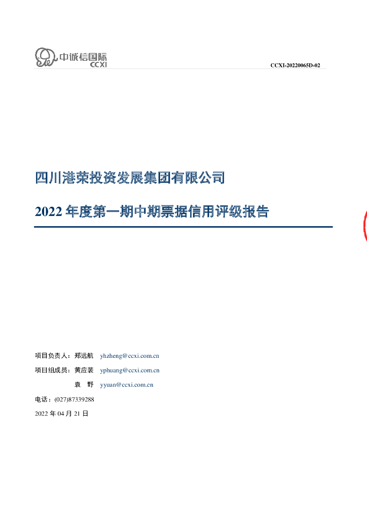 中诚信:四川港荣投资发展集团有限公司2022年度第一期中期票据信用评级报告.pdf