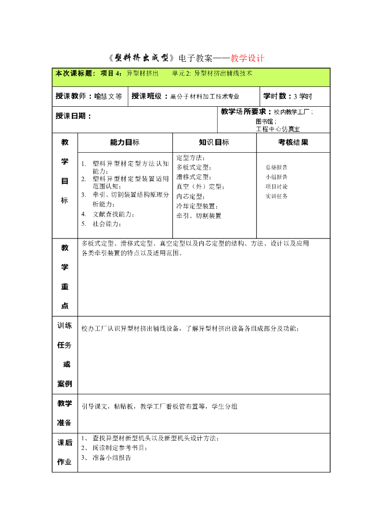 《塑料挤出成型》电子教案-单元2:异型材挤出辅线技术.pdf
