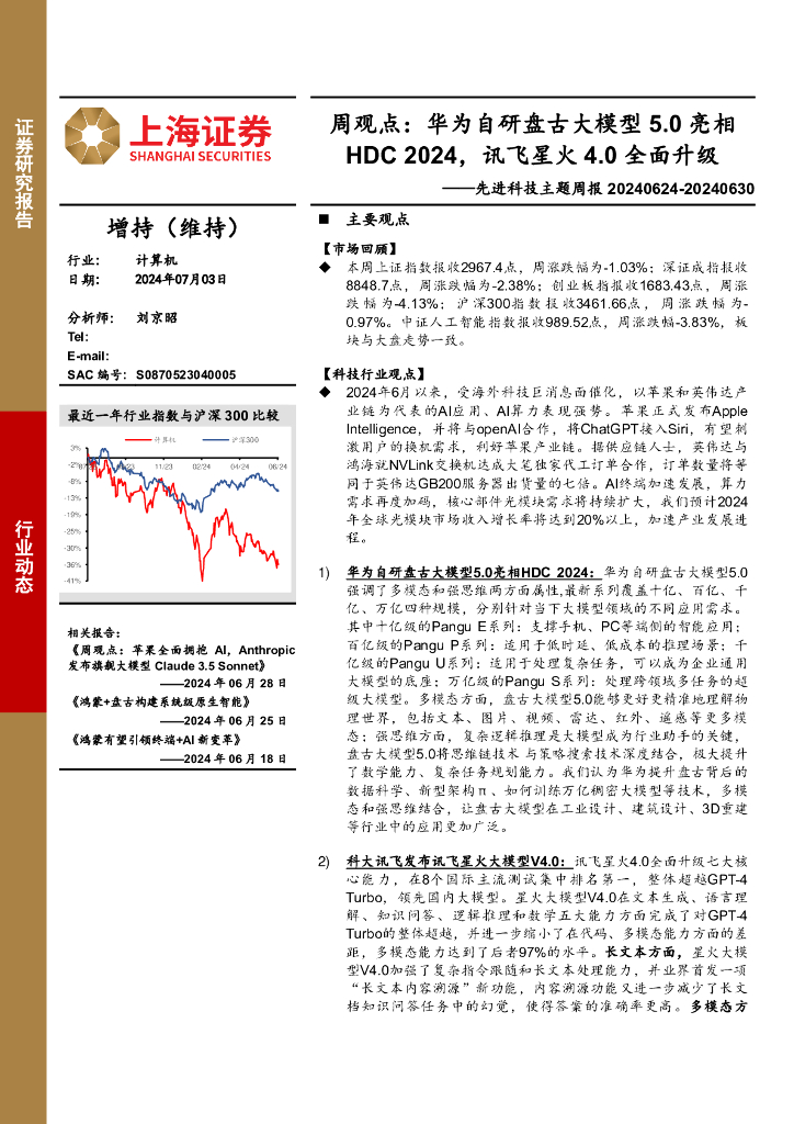 上海证券:计算机行业先进科技主题周报-周观点:华为自研盘古大模型5.0亮相HDC2024,讯飞星火4.0全面升级.pdf